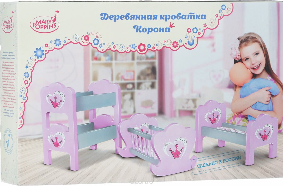 10 цен на Кроватка для куклы деревянная "Корона" Mary Poppins 67114