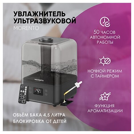 Ультразвуковой увлажнитель воздуха для дома с пультом управления Morento 4.5л информация: