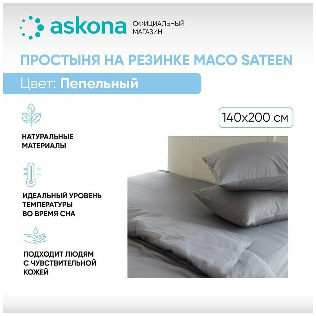 Простыня на резинке 140*200 Askona Comfort (Аскона) Maco Sateen Пепельный информация:
