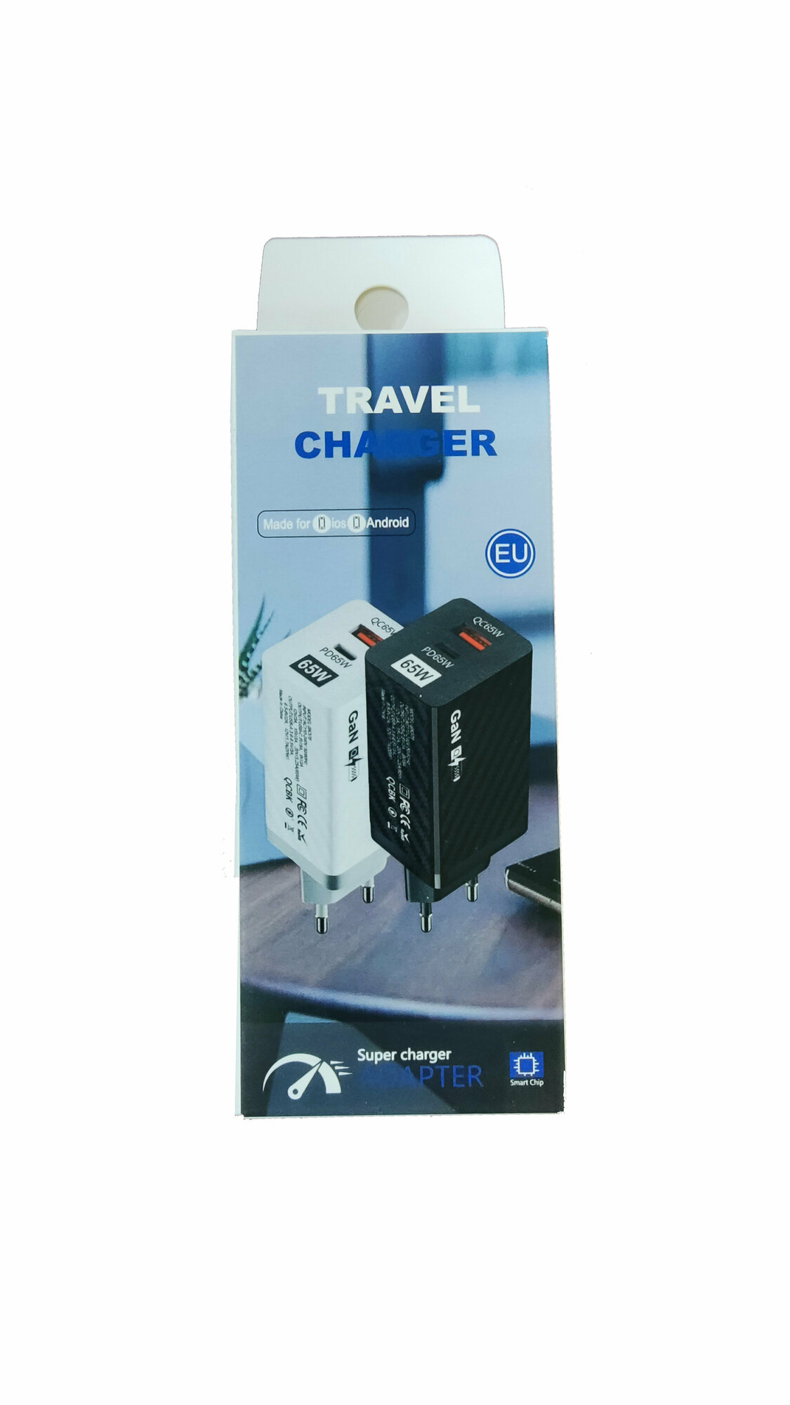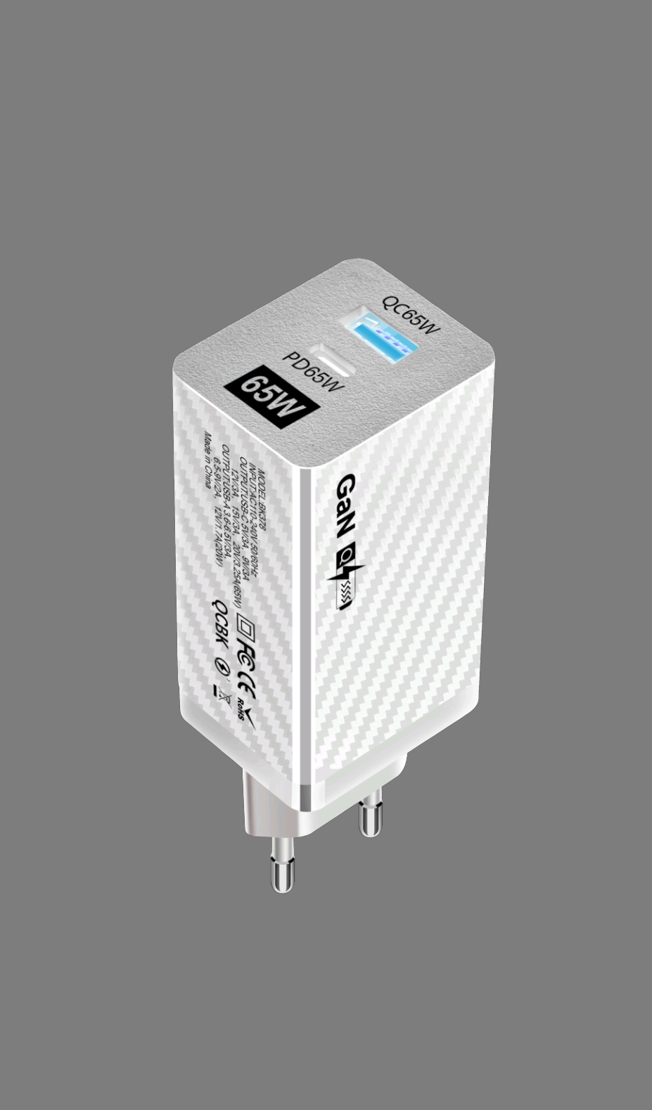 Зарядное устройство 65w GaN QC PD (Type C + Type A) (белый) информация: