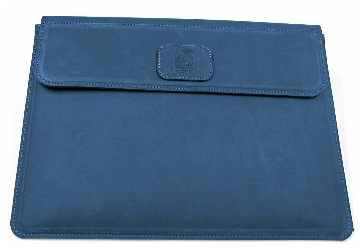 Кожаный Чехол - папка J.Audmorr для Macbook 14 Pro (2023) / Ноутбука 13,3"-14", с размерами до 325 х 225 х 18 мм, синий, Newport 14 Cobalt