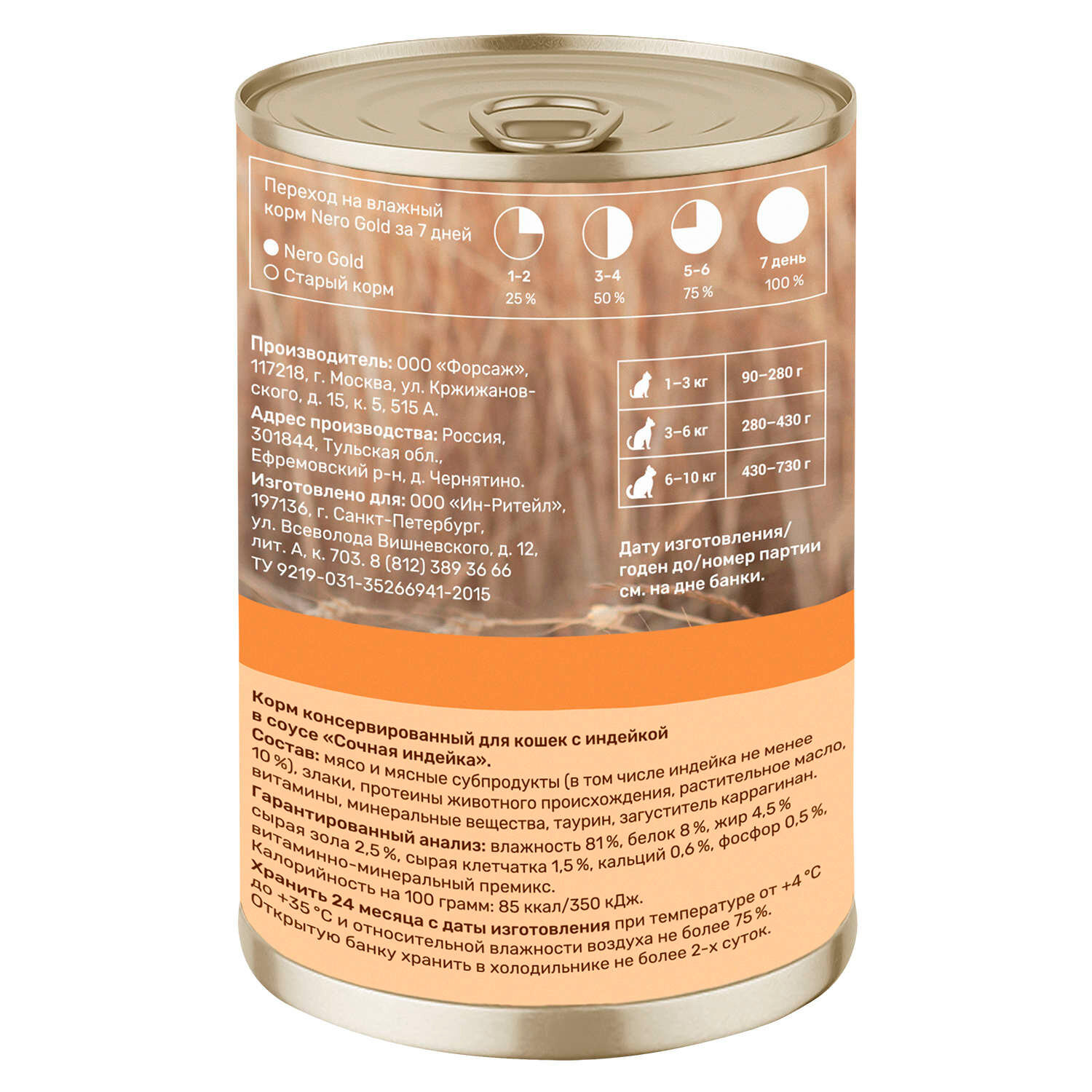 Корм Nero Gold Juicy Turkey Сочная индейка (консерв.) для кошек, 415 г x 12 шт информация: