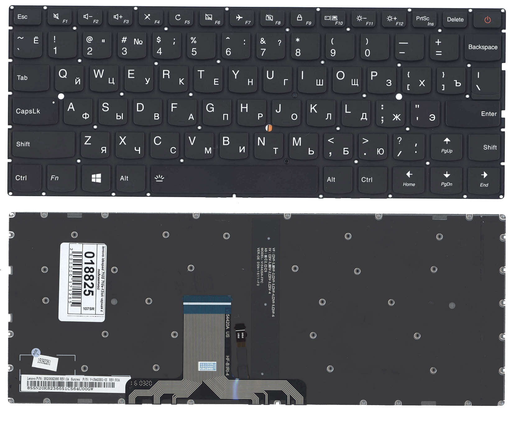 Клавиатура для ноутбука Lenovo IdeaPad 710S-13ISK черная без рамки с подсветкой информация: