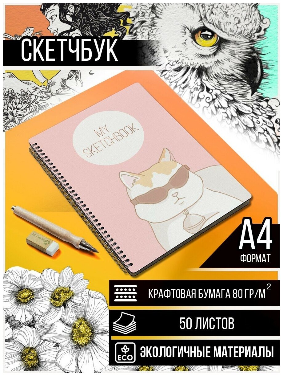 Скетчбук А4 крафт 50 листов Блокнот для рисования мемы коты кот в очках милота - 1023 информация: