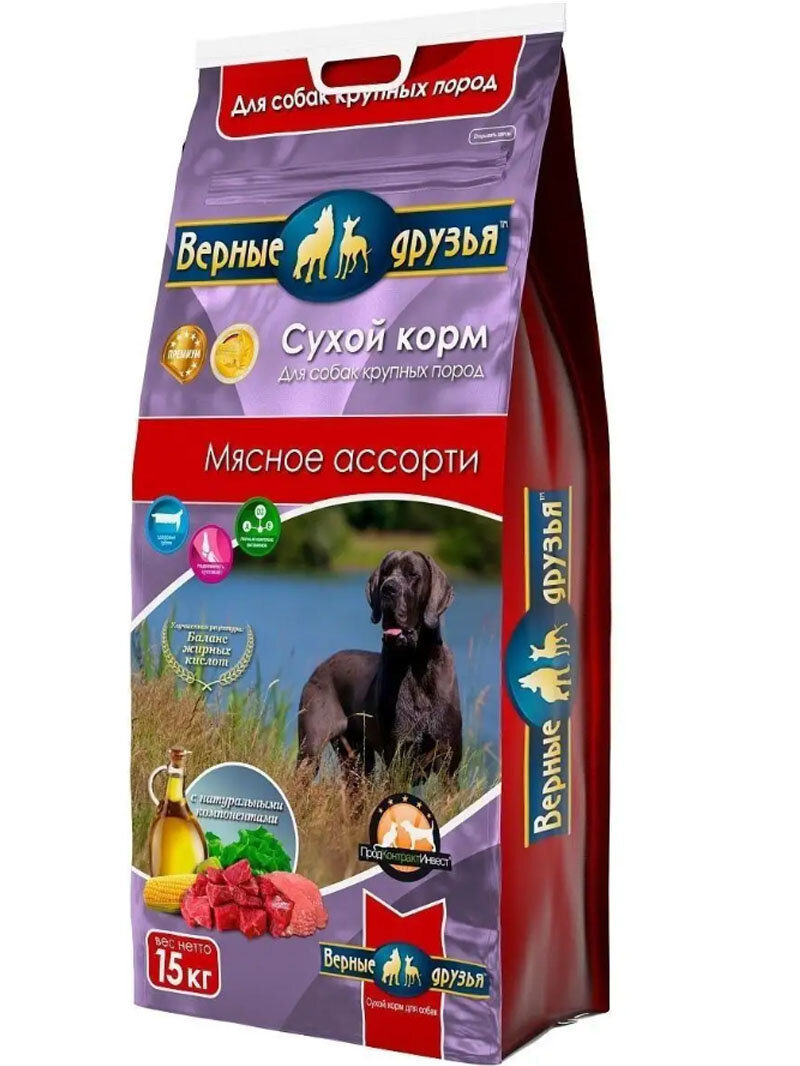 Верные друзья сухой для взрослых собак мясное ассорти 15кг информация: