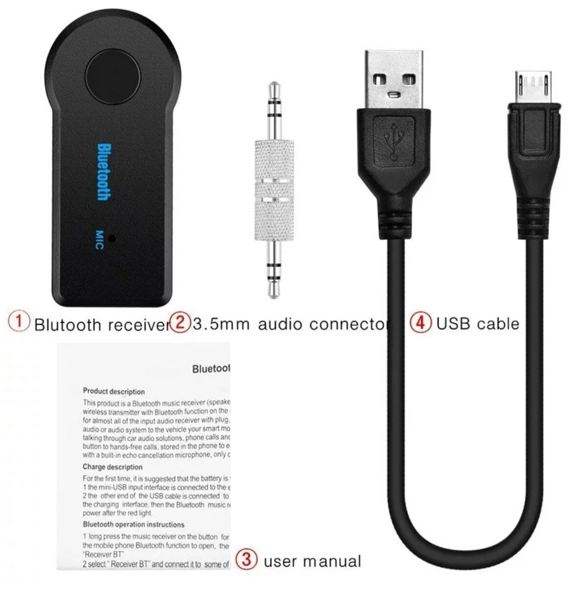 Адаптер AUX блютуз, FM-трансмиттер, автомобильный Bluetooth-адаптер с разъемом Mini Jack 3.5мм информация: