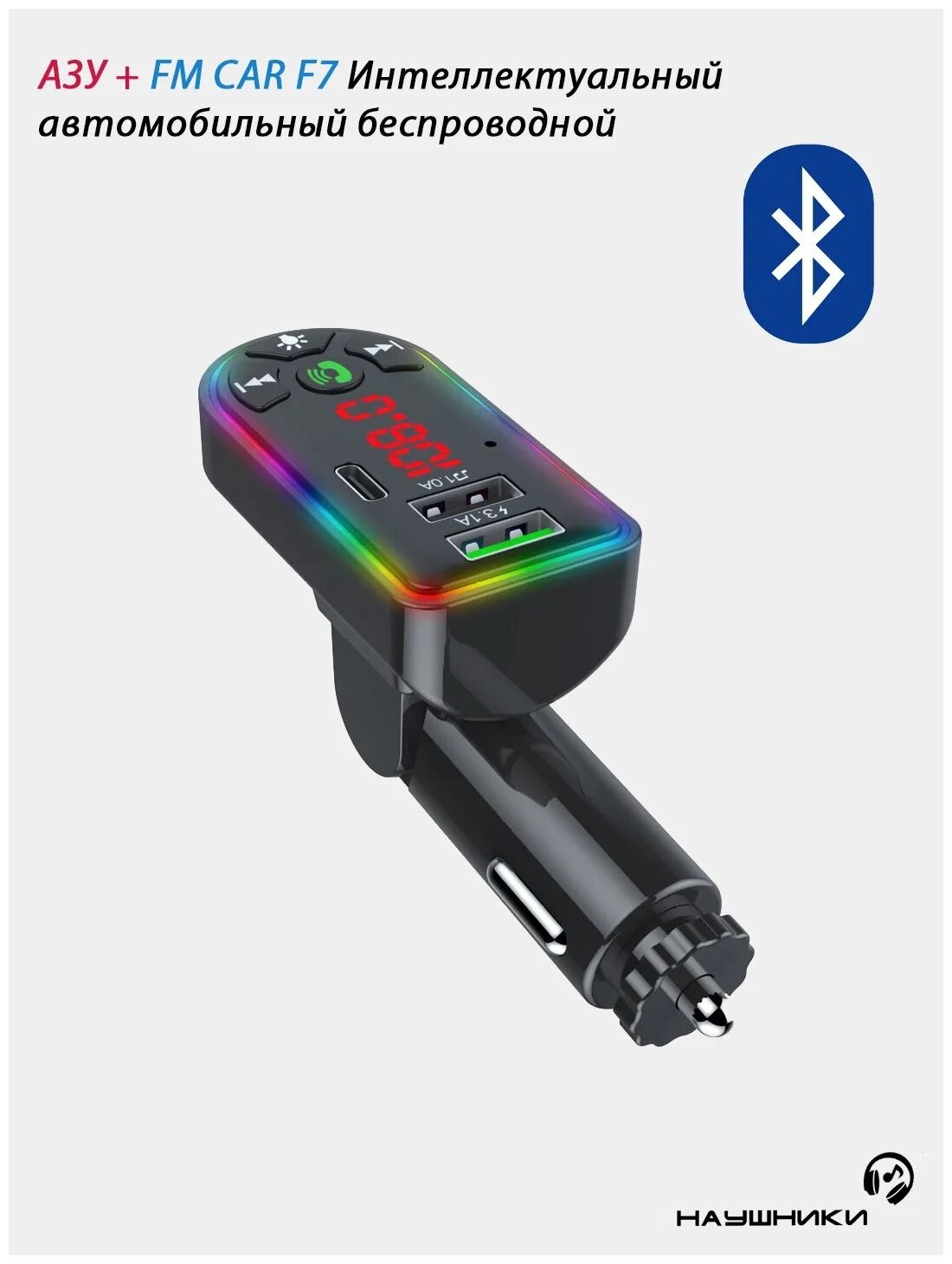 Отзывы на FM модулятор / трансмиттер Car F7 с Blluetooth, громкая связь, зарядное устройство в прикуриватель