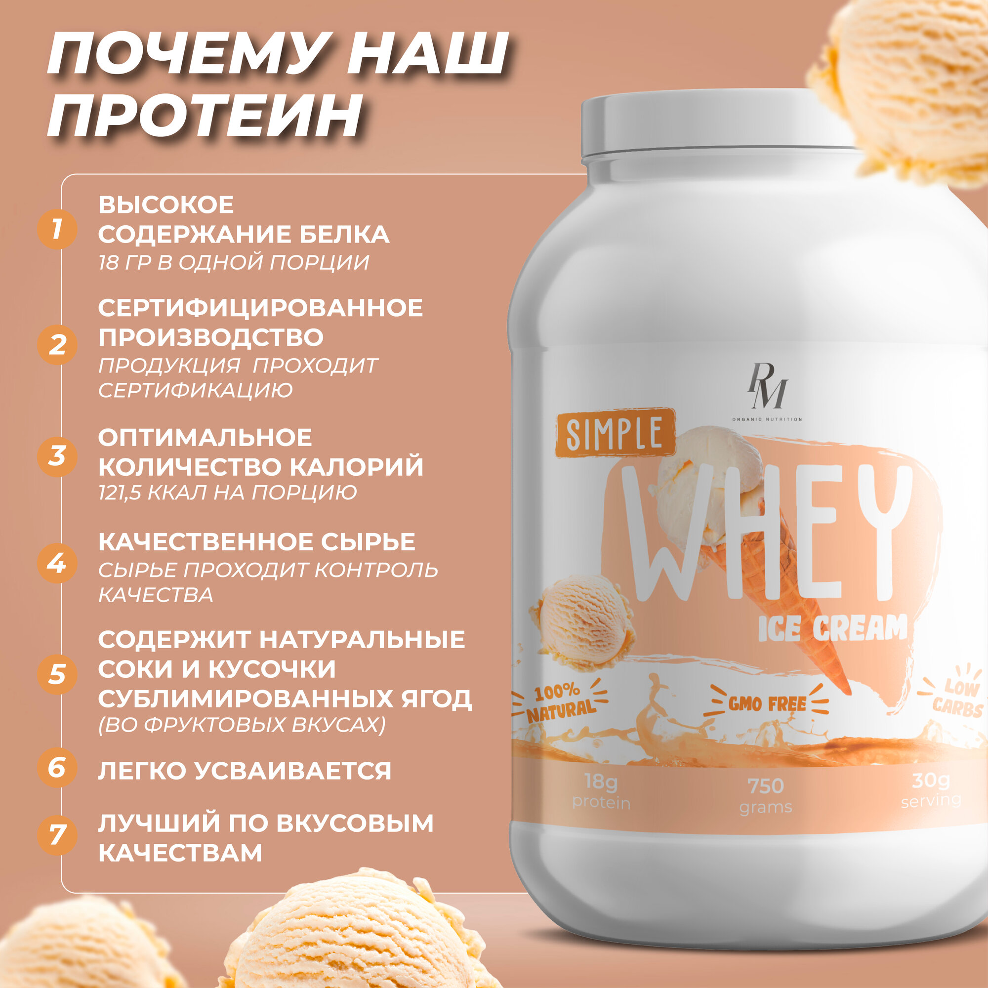 Протеин Simple Whey PM-organic nutrition, 750 гр, мороженое информация: