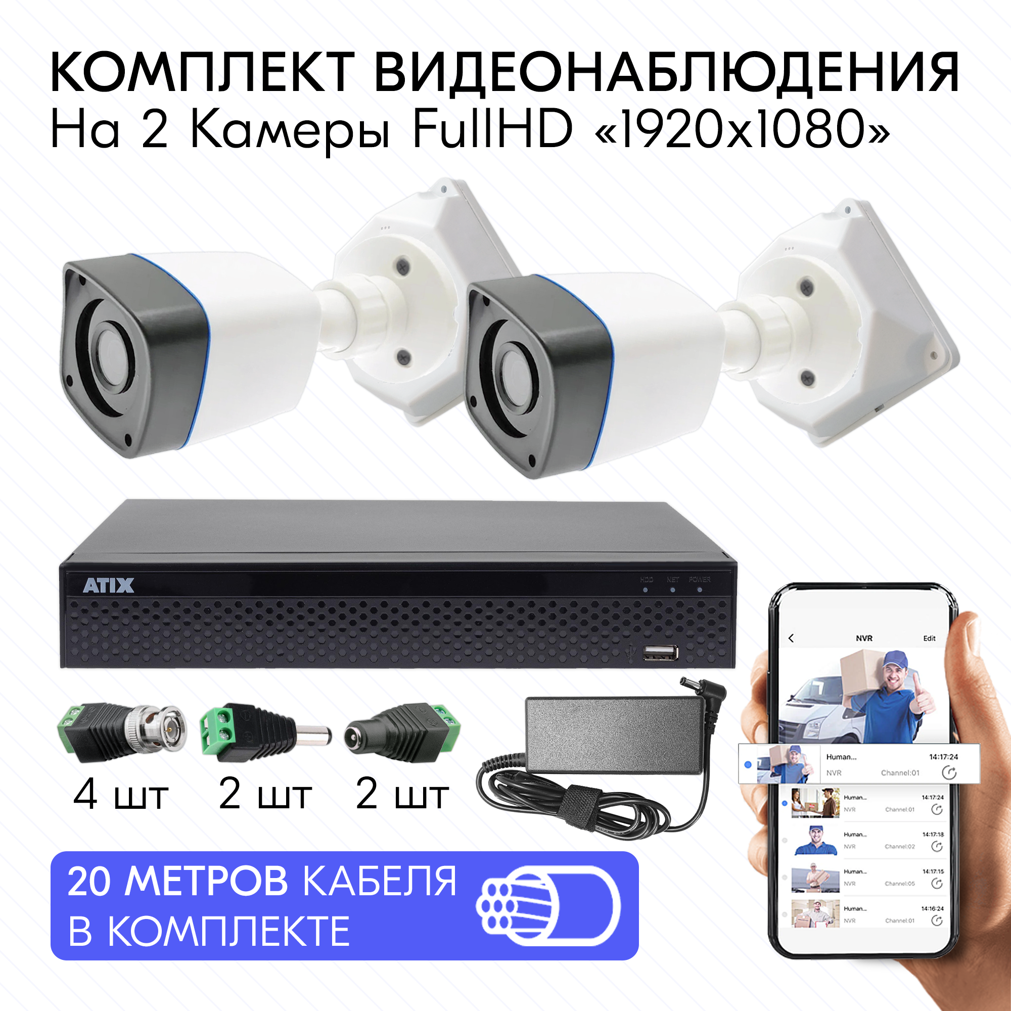 Готовый комплект видеонаблюдения FULL HD на 2 уличные камеры для дома и офиса, комплект видео наблюдение информация: