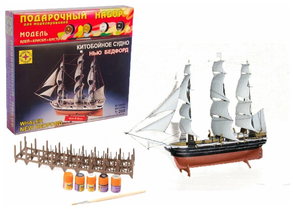 Моделист Сборная модель "Китобойное судно Нью-Бедфорд" с клеем и набором красок (Моделист) информация: