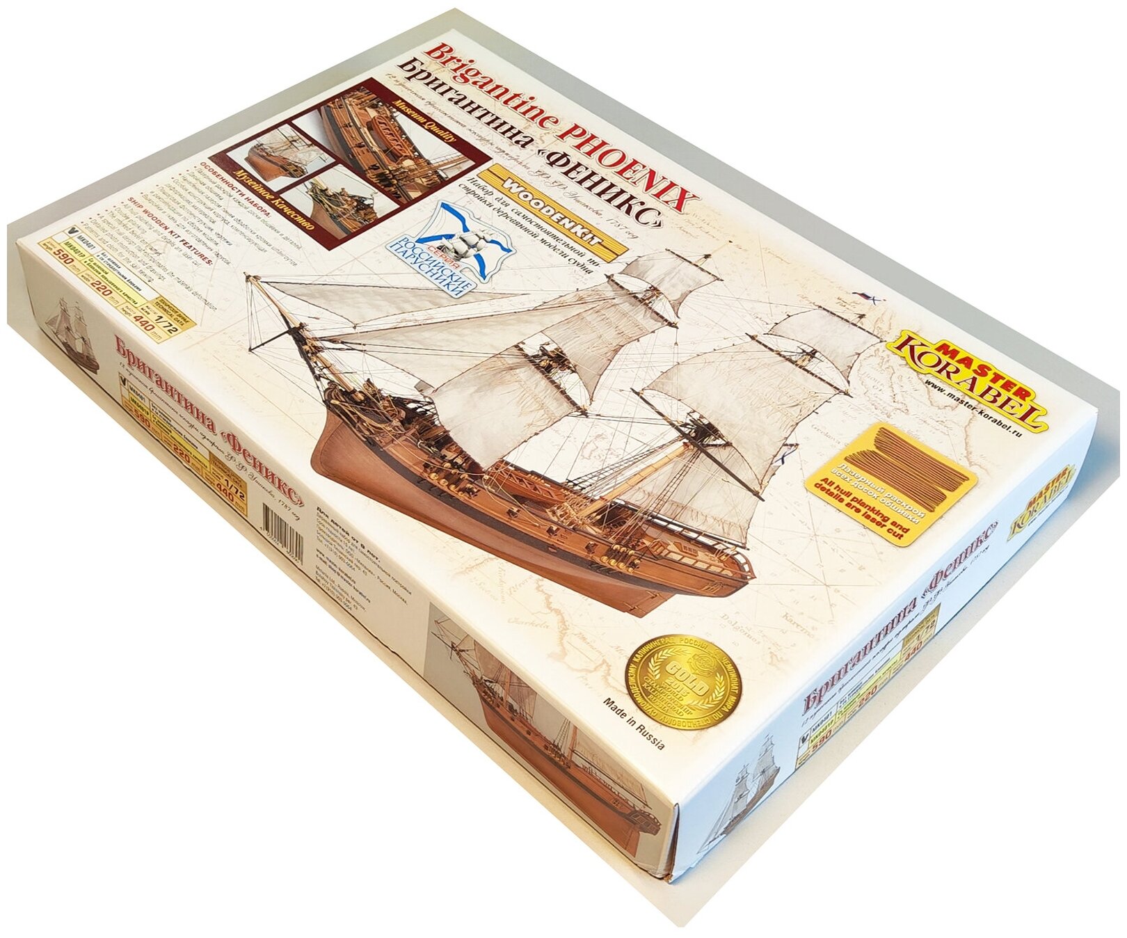 Бригантина Феникс Улучшенная, модель парусного корабля, М. 1:72, подарочный набор для сборки +подставка + инструменты + краска, лак и клей информация: