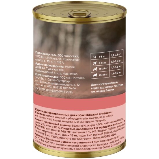 Консервы для собак Свежий ягненок, 415 гр