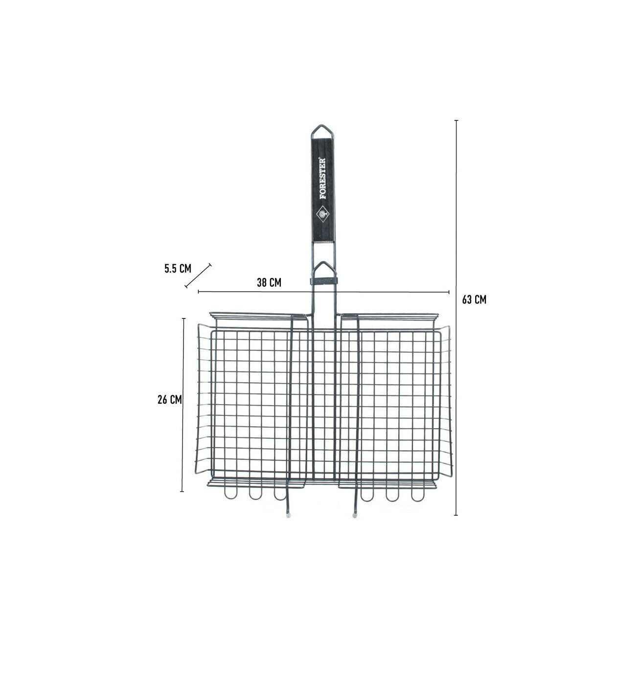 Решетка Forester Решетка - гриль, для мангала, FORESTER 26*38 см объемная большая, нержавеющая сталь с ручками из каучукового дерева