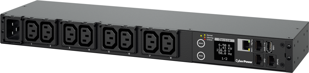 CyberPower Блок распределения питания PDU CyberPower 20MHVIEC8FNET(31005) NEW Monitor 1U type PDU, 16Amp, 8 IEC outlets, PPBE management S/W. информация: