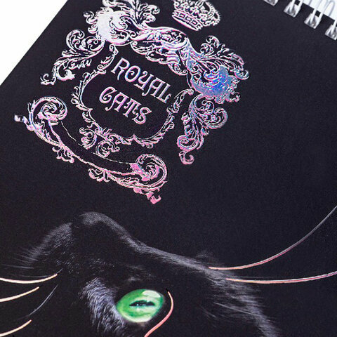 10 цен на Блокнот А5 (146х215 мм), 80 л., гребень, клетка, ламинация, 3D фольга, HATBER, "Royal Cats", 80Б5лофВ1гр