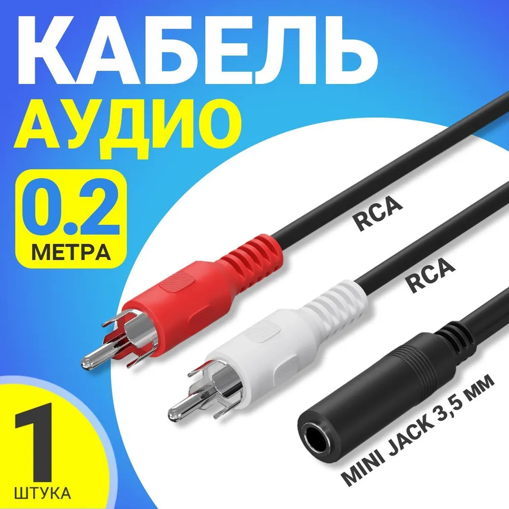 Отзывы на Аудио кабель переходник адаптер GSMIN AV11N Mini Jack 3,5 мм мини джек (F) - 2x RCA тюльпаны (M) (20 cм) (Черный)