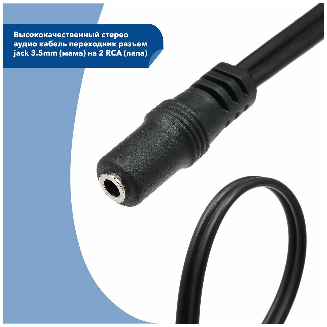 10 цен на Аудио кабель переходник адаптер GSMIN AV11 Mini Jack 3,5 мм мини джек (F) - 2x RCA тюльпаны (M) (25 cм) (Черный)