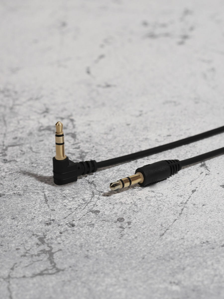 Аудиокабель угловой (штекер 3.5 мм) 1 м для подключения к аудиосистеме, черный