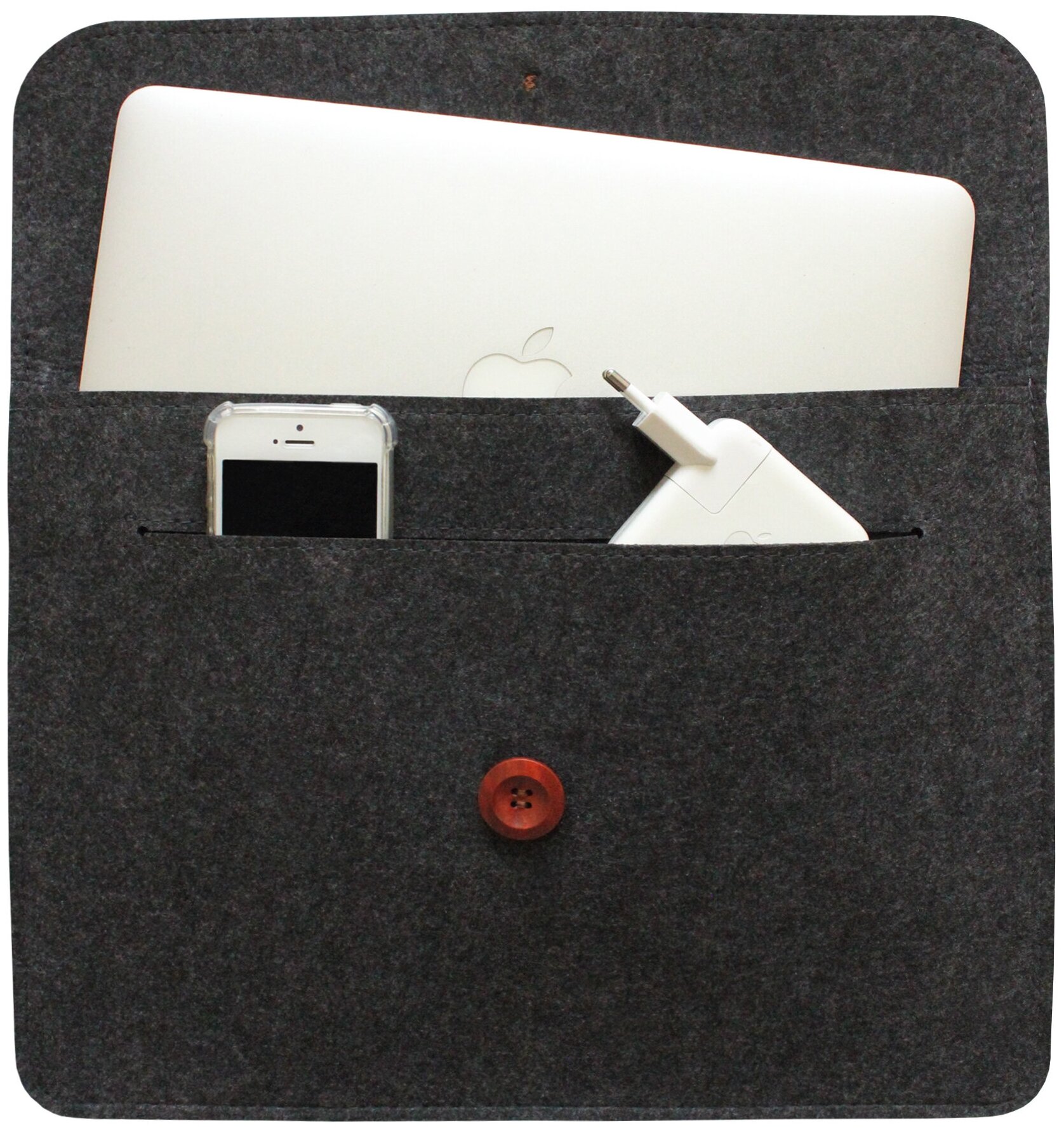 Универсальный войлочный чехол конверт для ноутбука до 13.3 / 14", антрацит, Чехол папка для ноутбуков Macbook Dell Asus Lenovo HP Xiaomi до 13.3 / 14"