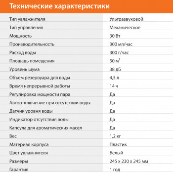 Увлажнитель воздуха ультразвуковой SUNWIND SUH8410W, 4.5л, белый информация: