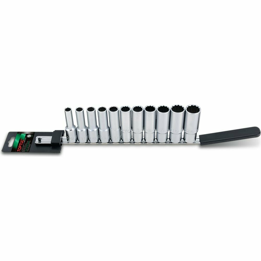 10 цен на Набор головок 1/2" 10-22мм 12гр. глубокие 11шт на подвесе TOPTUL (GAAQ1105)