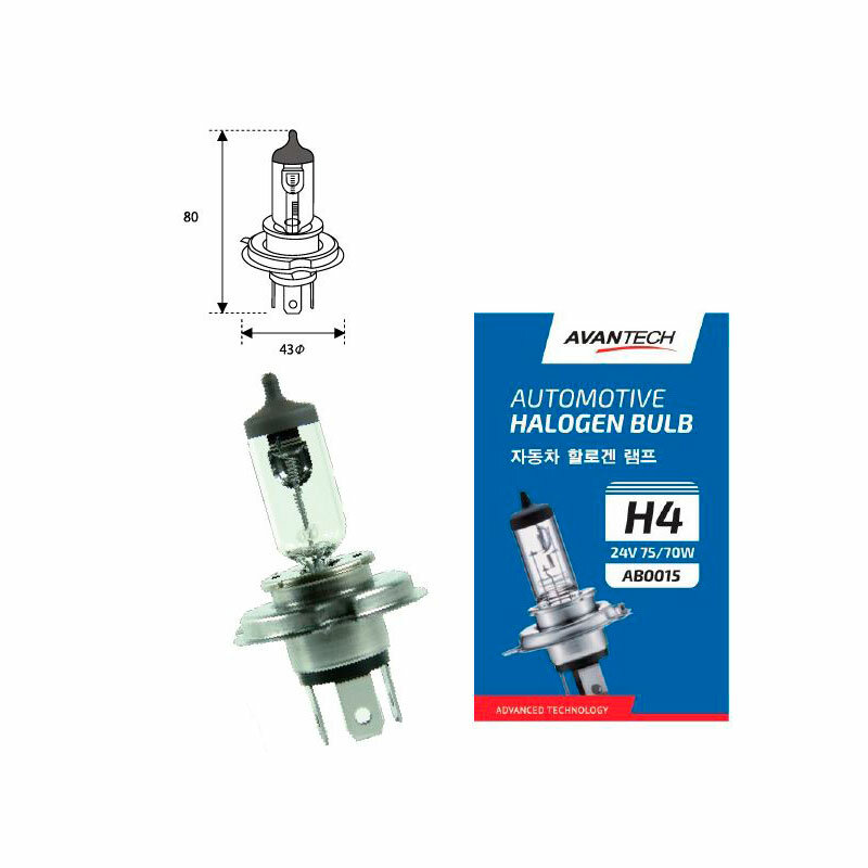 Лампа галогенная Avantech H4 (HB2) 24V 75/70W 1100lm 1710K, 1 шт. информация: