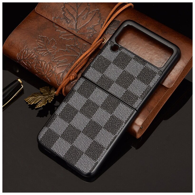 Чехол бампер накладка MyPads для Samsung Galaxy Z Flip 3 на силиконовой основе обтянутый кожей с дизайном в клетку черный информация: