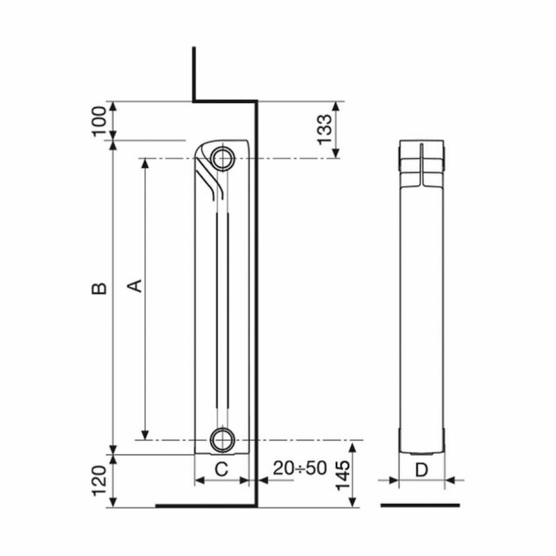 Радиатор алюминиевый Fondital Exclusivo D3 500/100 (97х556) белый 10 секций, 1760 Ватт