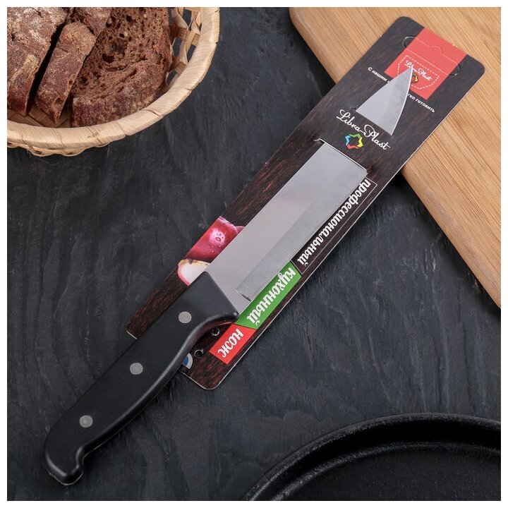 Нож кухонный / Кухонный нож " Сакура" кн-120 / Нож кухонный 20 см. черная ручка / Libra Plast