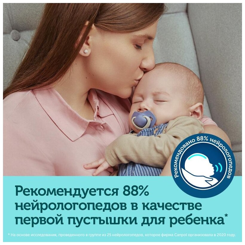 Пустышка симметричная силиконовая Canpol Babies Pure Color 6-18 мес, 2 шт., голубой информация: