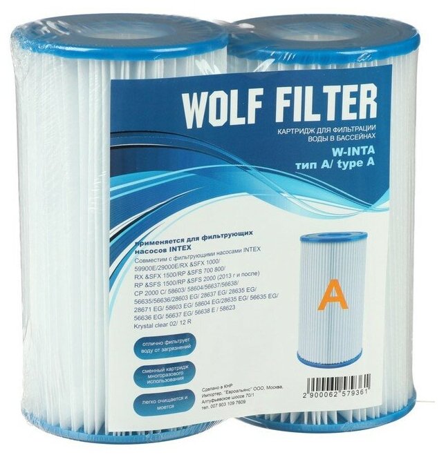 WOLF FILTER Картридж для очистки воды в бассейнах для фильтрующих насосов INTEX, тип А, 2 шт. информация:
