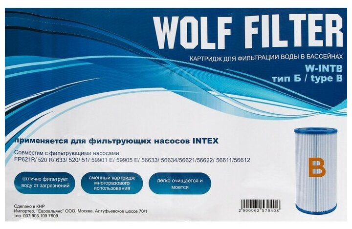 Картридж для очистки воды в бассейнах для фильтрующих насосов INTEX, тип B, 2 шт. информация: