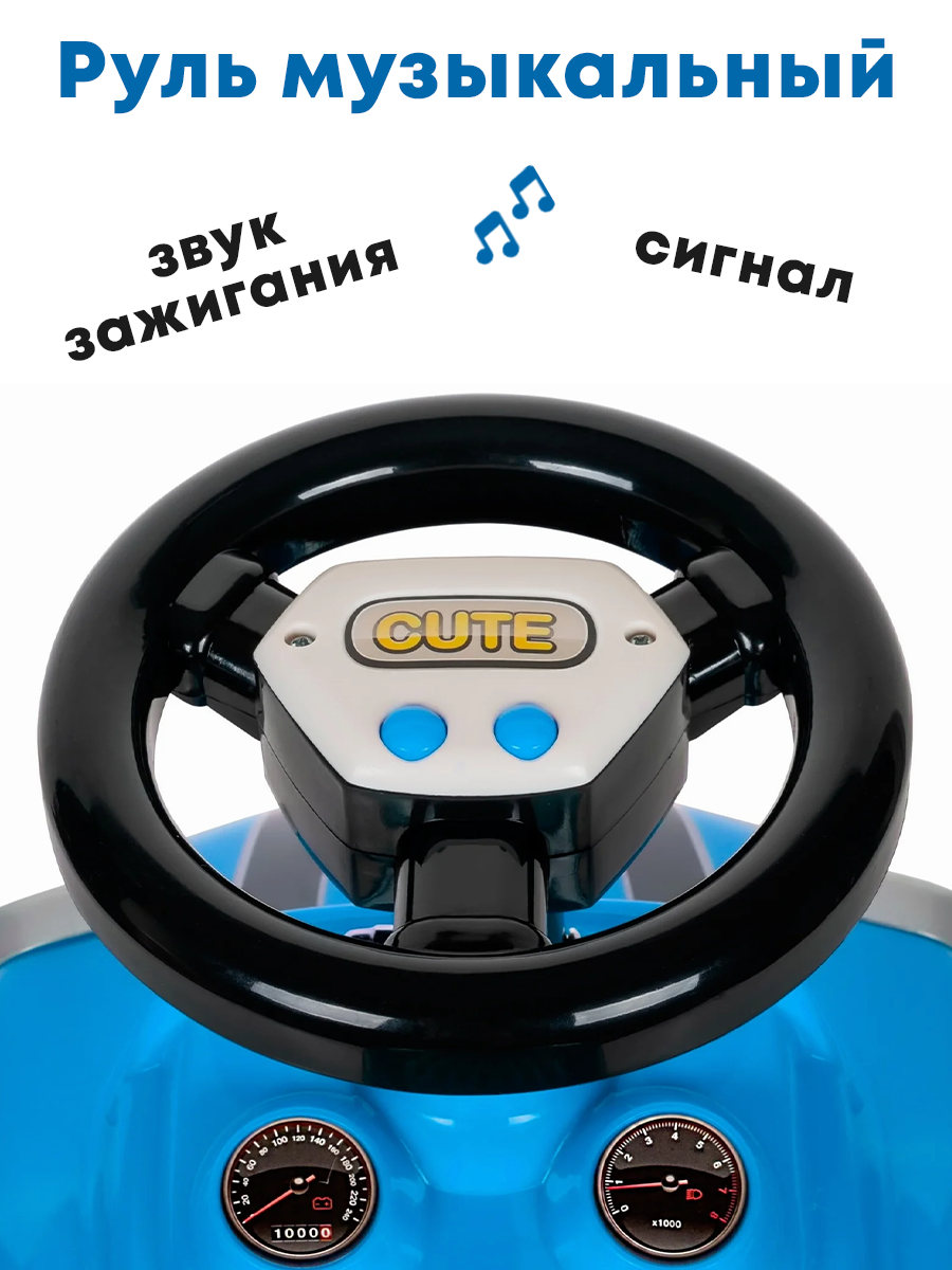 | Дополнительная информация | руль музыкальный 16 см: 3 веселые песни на английском языке и сигнал; диаметр колес 12 см; высота до сидения 20 см |