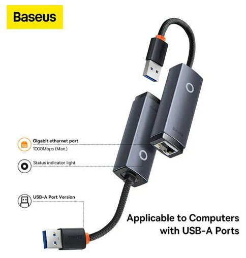 Хаб Baseus Hub Lite Series Ethernet Adapter USB to RJ45 LAN Port 1000Mbps (WKQX000113) информация: