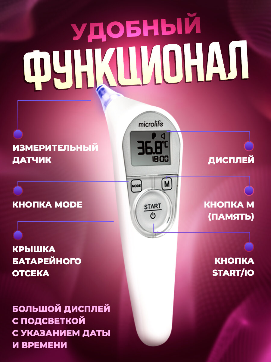 Термометр медицинский электронный Microlife MT 600, семейный, детский, измерение температуры тела, не содержит ртуть