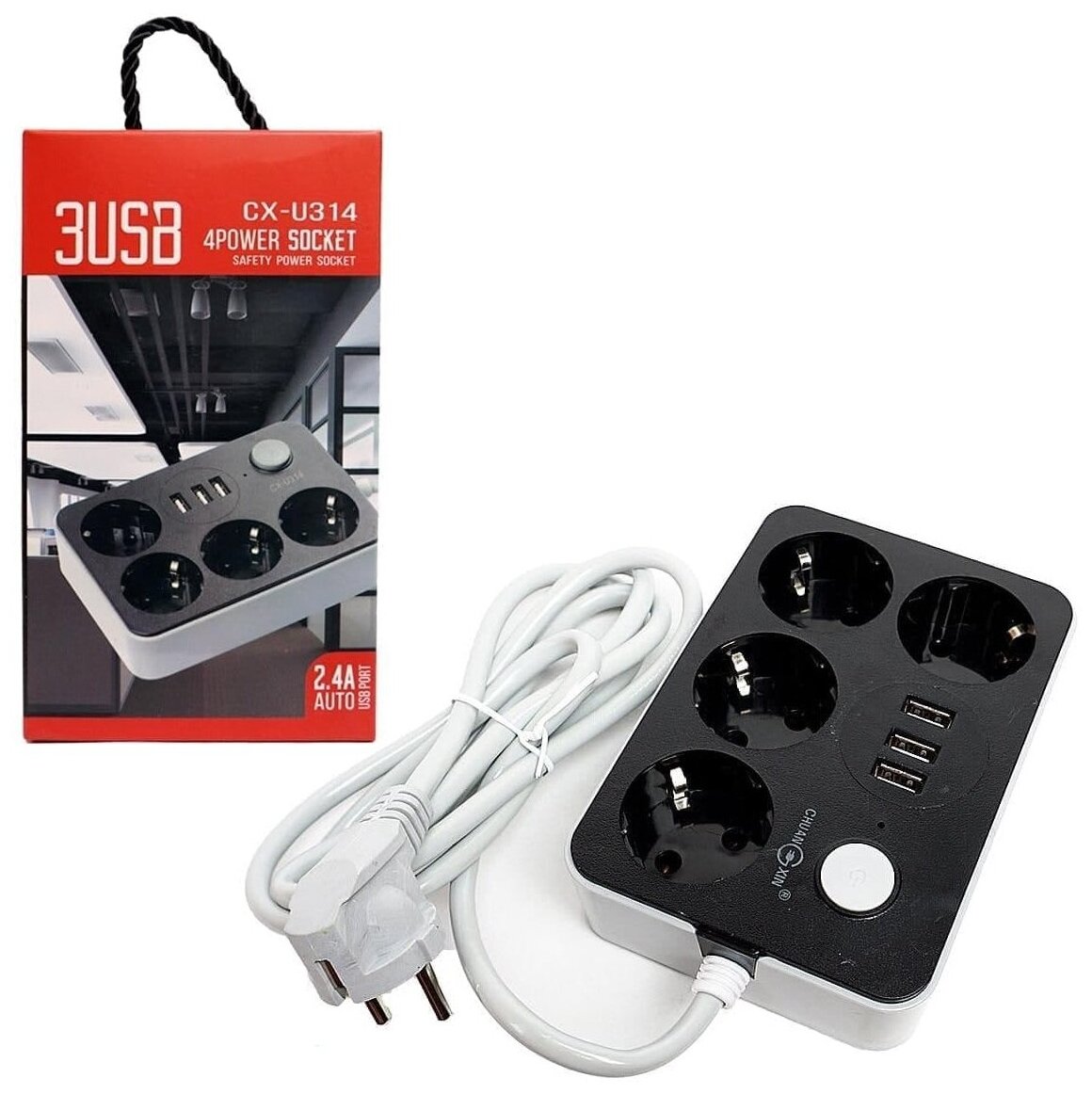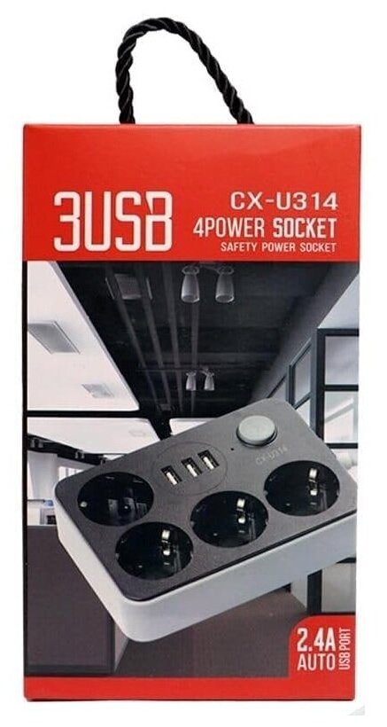 Отзывы на YYC / Сетевой фильтр 3xUSB + 4 розетки / CX-U314 / черно-серый