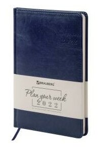 Отзывы на BRAUBERG Еженедельник датированный 2022 А5 145х215мм Imperial, под кожу, синий, 112872