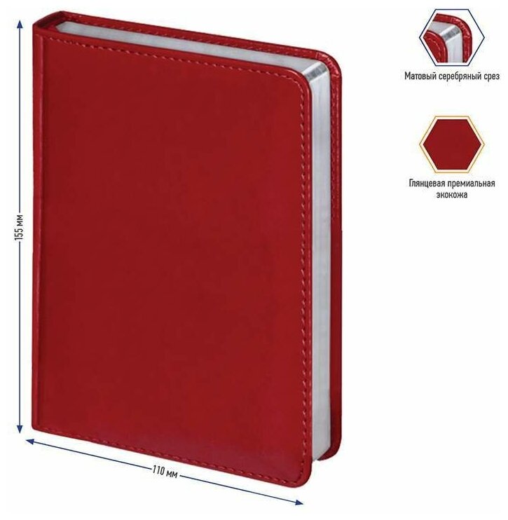 10 цен на Ежедневник недатир. А6, 160л., кожзам, Berlingo "Silver Pristine", серебр. срез, красный