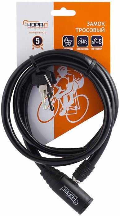 Замок велосипедный тросовый с ключом нора-м №20, 8х1000 мм информация: