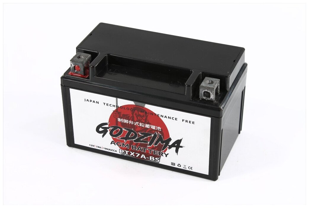 Мото аккумулятор Godzima GTX7A-BS (YTX7A-BS) стартерный для мотоцикла, квадроцикла, скутера AGM 12V 7 а/ч