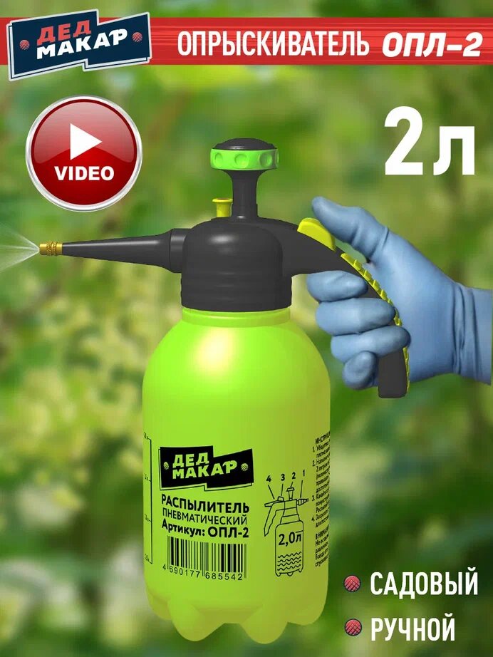 Опрыскиватель пневматический ДЕД макар ОПЛ-2, 2 л информация: