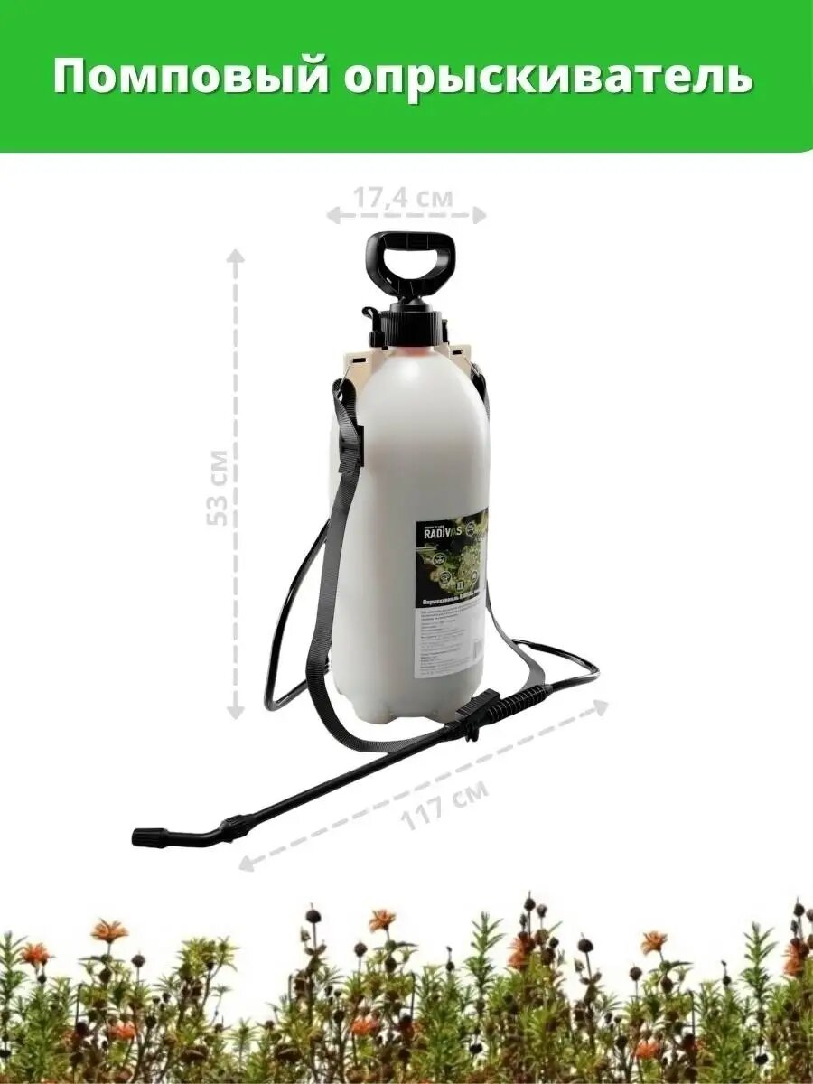 Опрыскиватель садовый помповый, переносной для цветов и огорода 8 л. информация: