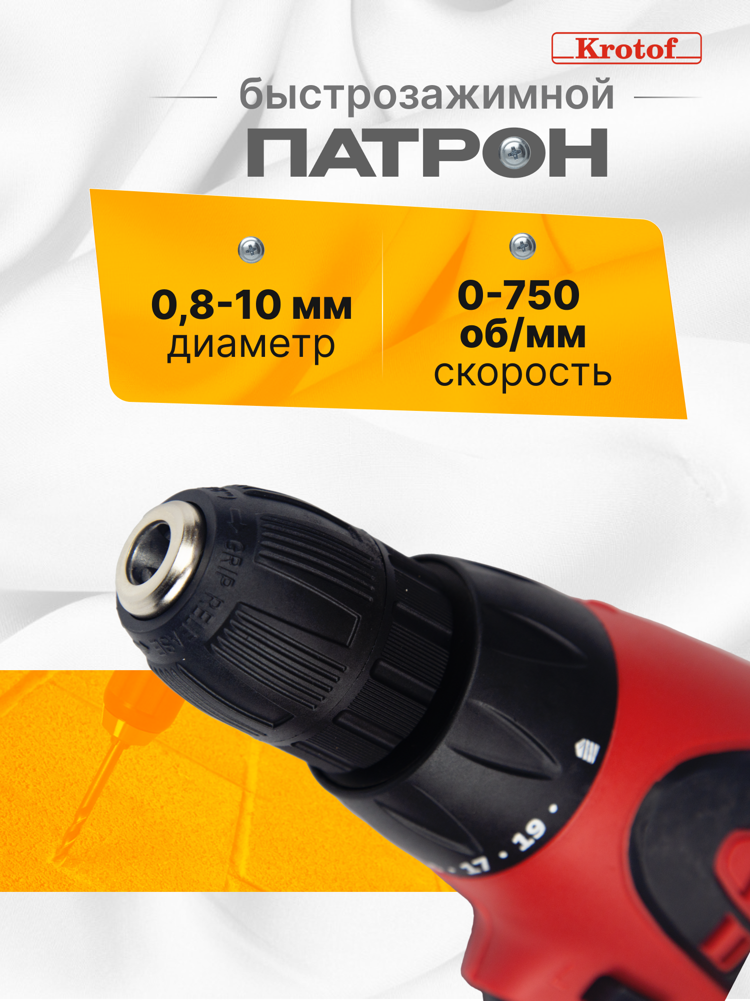 Дрель-шуруповерт электрическая Krotof DS-550, от сети, 550 Вт, 750 об/мин / кротоф информация: