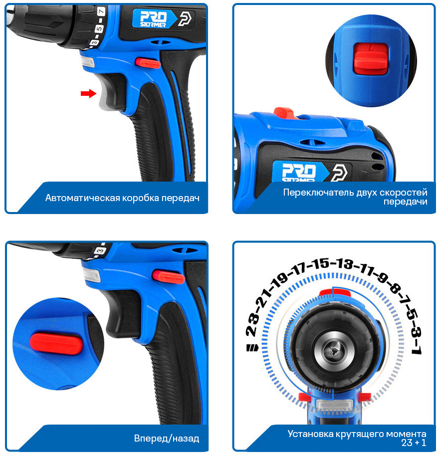 Аккумуляторная дрель-шуруповерт Prostormer, 21В, PTET00902A 149 280