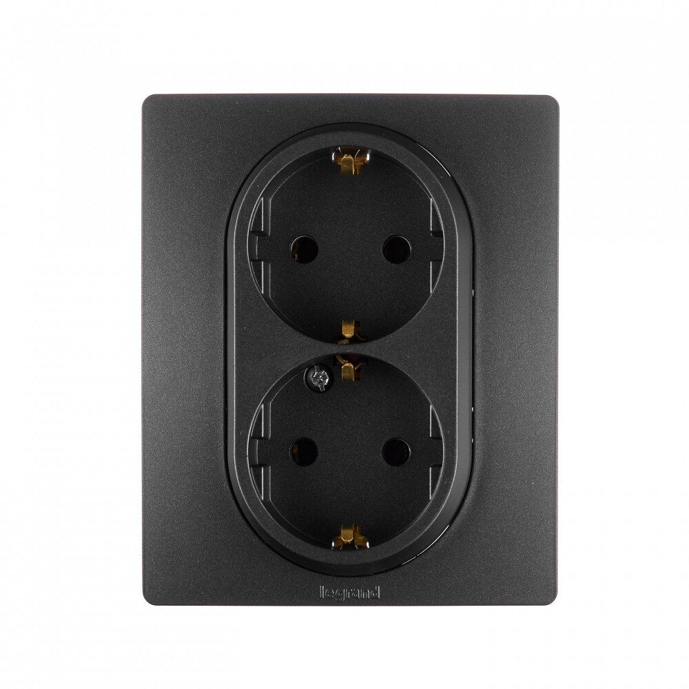 Розетка 2-м СП Etika 16А IP20 250В 2P+E с заземл. немецк. стандарт винт. клеммы в сборе антрацит Leg | код 672623 | Legrand (8шт.в упак.) информация: