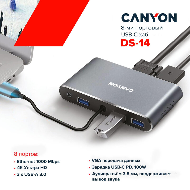 10 цен на Разветвитель USB CANYON CNS-TDS14 type C - VGA, 2xUSB3.0, HDMI(SZ1CNSTDS14)