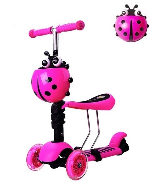 Отзывы на Scooter Самокат 3-х колесный с сидением, светящиеся колеса, Божья коровка розовый HBC-011 с 1 года