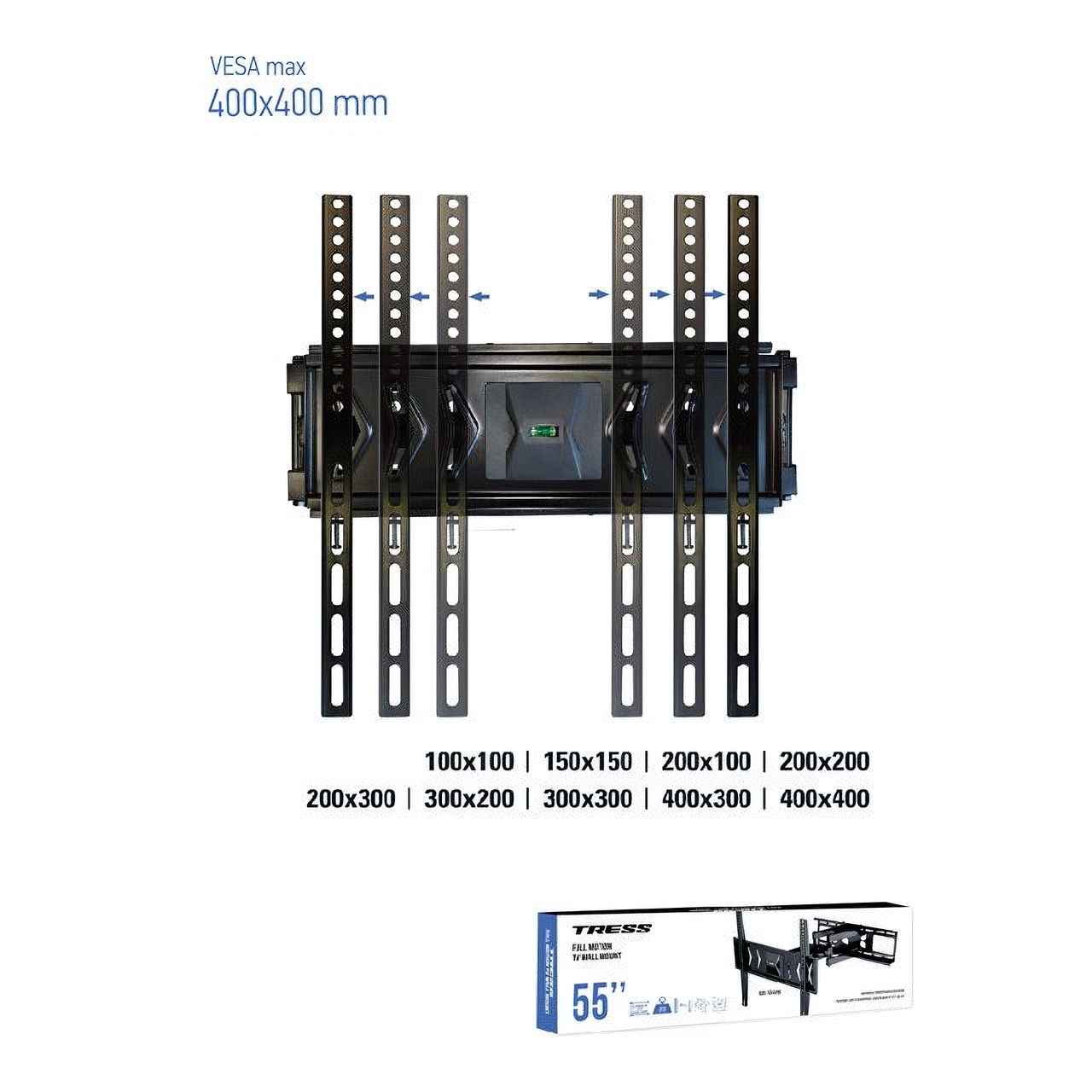 Кронштейн настенный для TV/монитора TRESS WM 1044M, 32"-55", VESA 100x100мм-400x400мм, наклонный, поворотный, до 35 кг (WM 1044M) 2 850 ₽