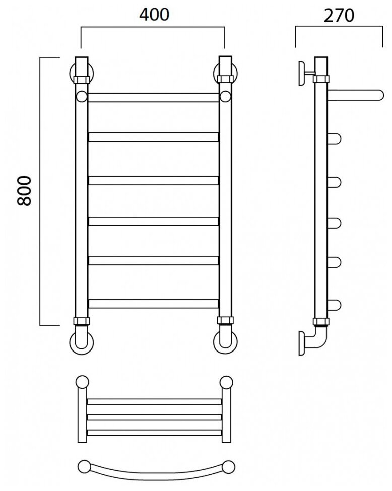 Полотенцесушитель Водяной узкий с полкой Di Kron, модель Premium-T 800х400 боковое подключение 50 см слева угловое