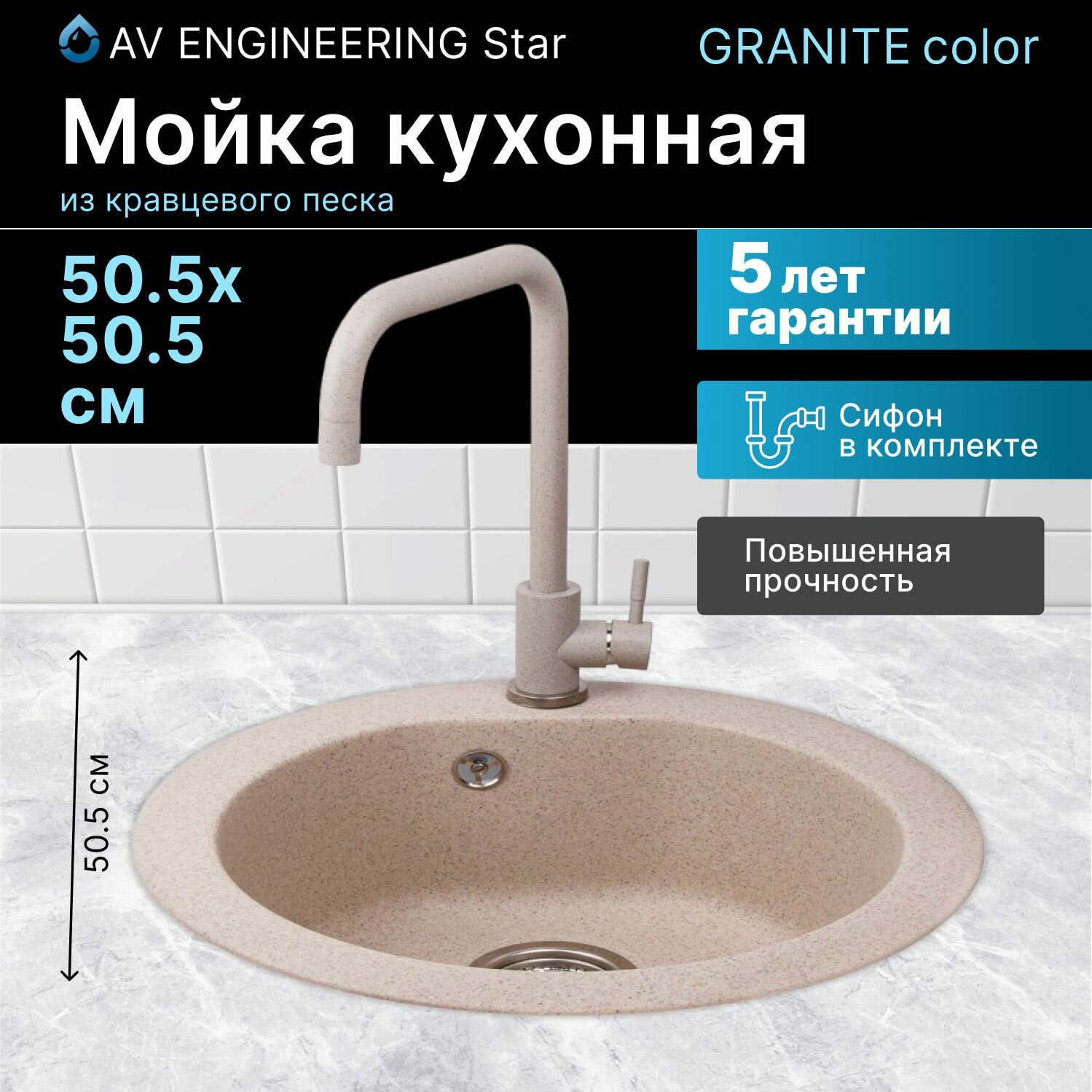 Мойка кухонная из искусственного камня STAR гранит 510х505 mm, AV Engineering (AV505515SGTA) 12 030 ₽